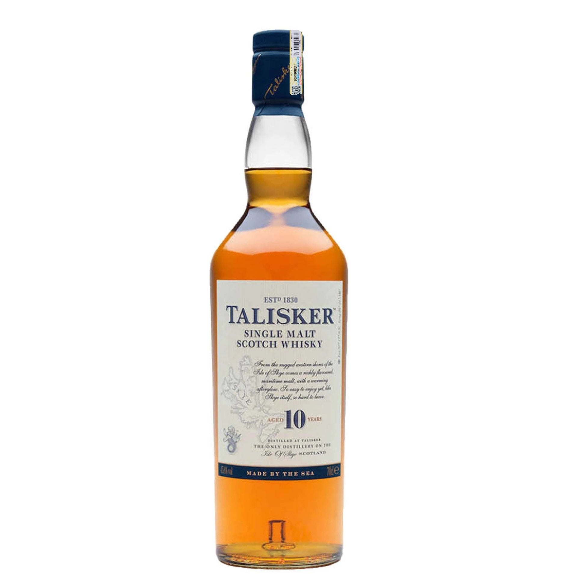 El Whisky de malta Talisker 10 años es un renombrado y premiado whisky de malta de la destilería más antigua en la remota, y escabrosa Isla de Skye. Potente, humeante, hecho por el mar, Talisker es reconocido por su carácter marítimo. Es un whisky poderoso y desafiante, su cuerpo contiene la pimienta característica y una dulzura ahumada. Como la cálida bienvenida de un mar salvaje. Es uno de los grandes nombres del whiskies de malta en el mundo, alabado por expertos y conocedores por su alta calidad. Madurado en barricas de roble en Escocia por un mínimo de 10 años.